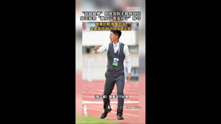 6月19日讯 在谈到身着正装指挥比赛时,苏超淮安队主帅董松表示,他尊重比赛也尊重对手。据荔枝新闻报道,苏超淮安队主帅董松...