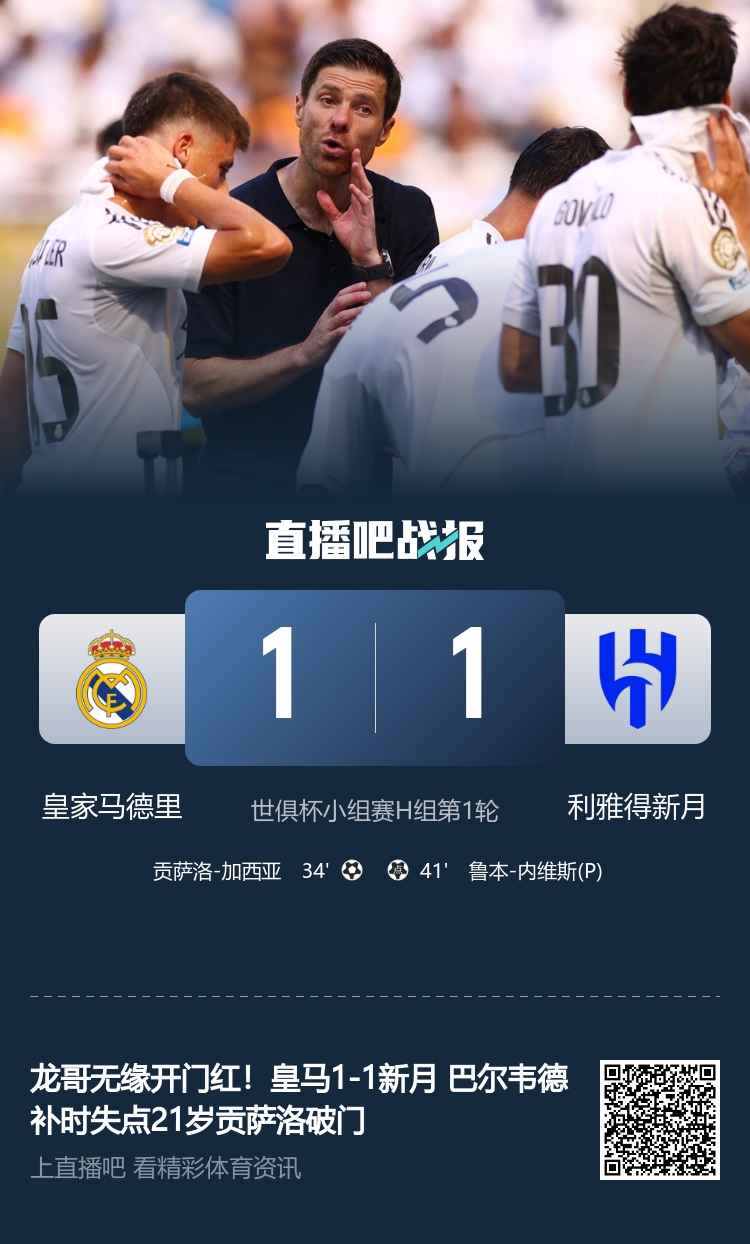 06月19日讯 世俱杯小组赛H组第1轮,皇马1-1战平利雅得新月,帕丘卡1-2萨尔茨堡红牛。H组积分榜,萨尔茨堡红牛3分...