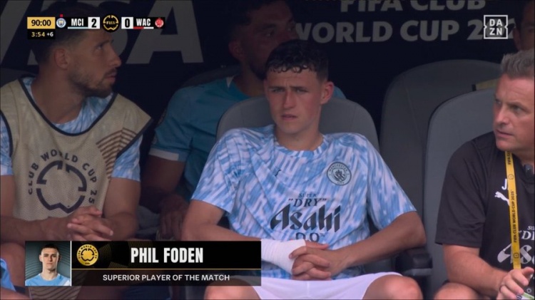 传射建功,官方:福登当选曼城2-0维达德全场最佳球员