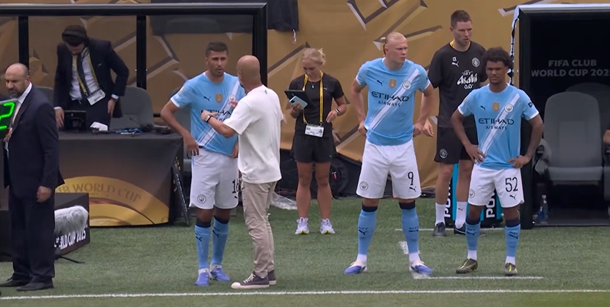 06月19日讯 世俱杯小组赛G组第1轮,曼城vs维达德。比赛第60分钟,曼城做出换人调整,哈兰德、罗德里、鲍勃替补登场,...