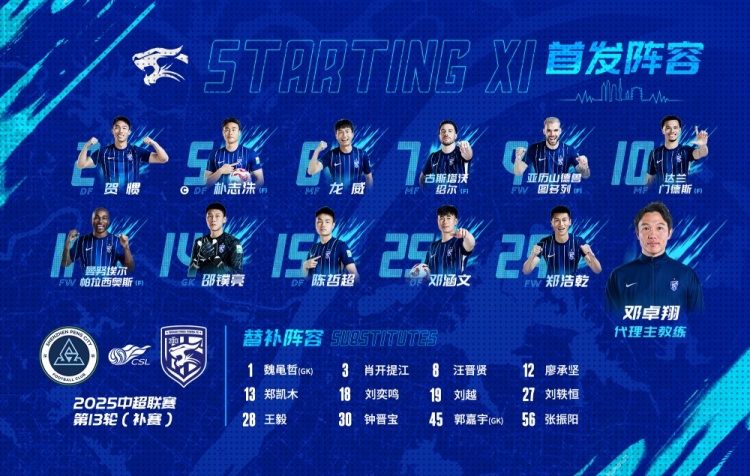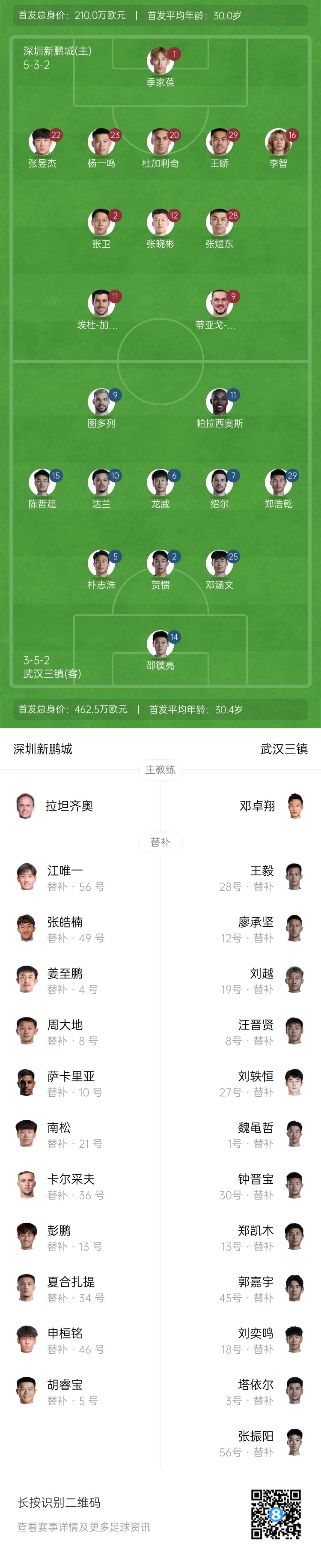 🔥深圳新鹏城主战武汉三镇首发阵容出炉!