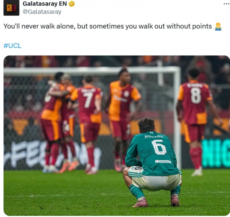 加拉塔萨雷官推调侃利物浦:你永不会独行,但有时会失败而归