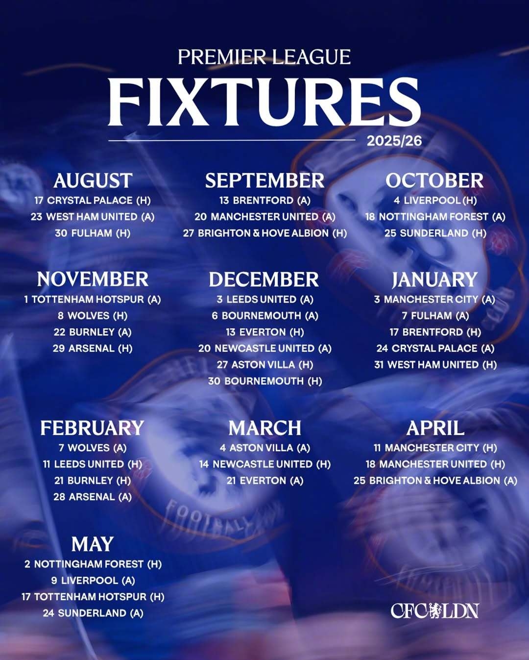 06月18日讯 英超官方公布25/26赛季赛程,切尔西队将在英超首轮对阵水晶宫,收官战则是对阵桑德兰。值得一提的是,切尔...