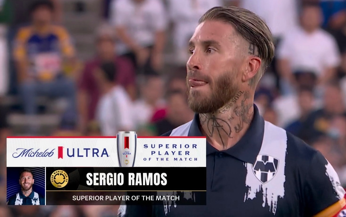 水爷神威!官方:39岁拉莫斯当选蒙特雷1-1国际米兰全场最佳