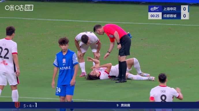 09月21日讯 中超第25轮,上海申花vs成都蓉城。比赛开场仅20秒,元敏诚与刘诚宇边路对抗后倒地不起,随后刘诚宇被主裁...
