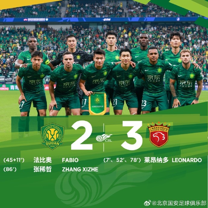 中超联赛第25轮,北京国安主场2-3负于上海海港