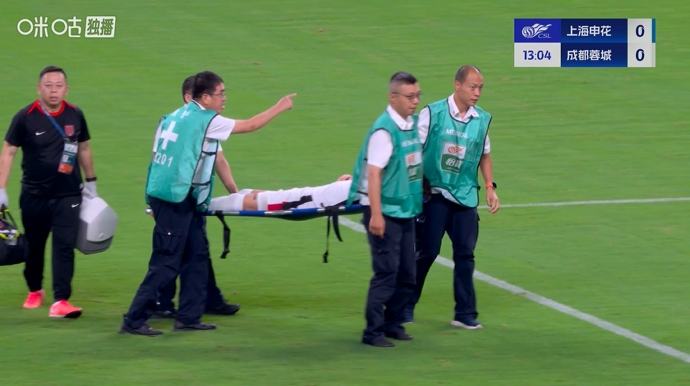 09月21日讯 中超第25轮,上海申花vs成都蓉城。比赛第12分钟,韦世豪倒地表情十分痛苦,立马示意换人,随后被担架抬下...