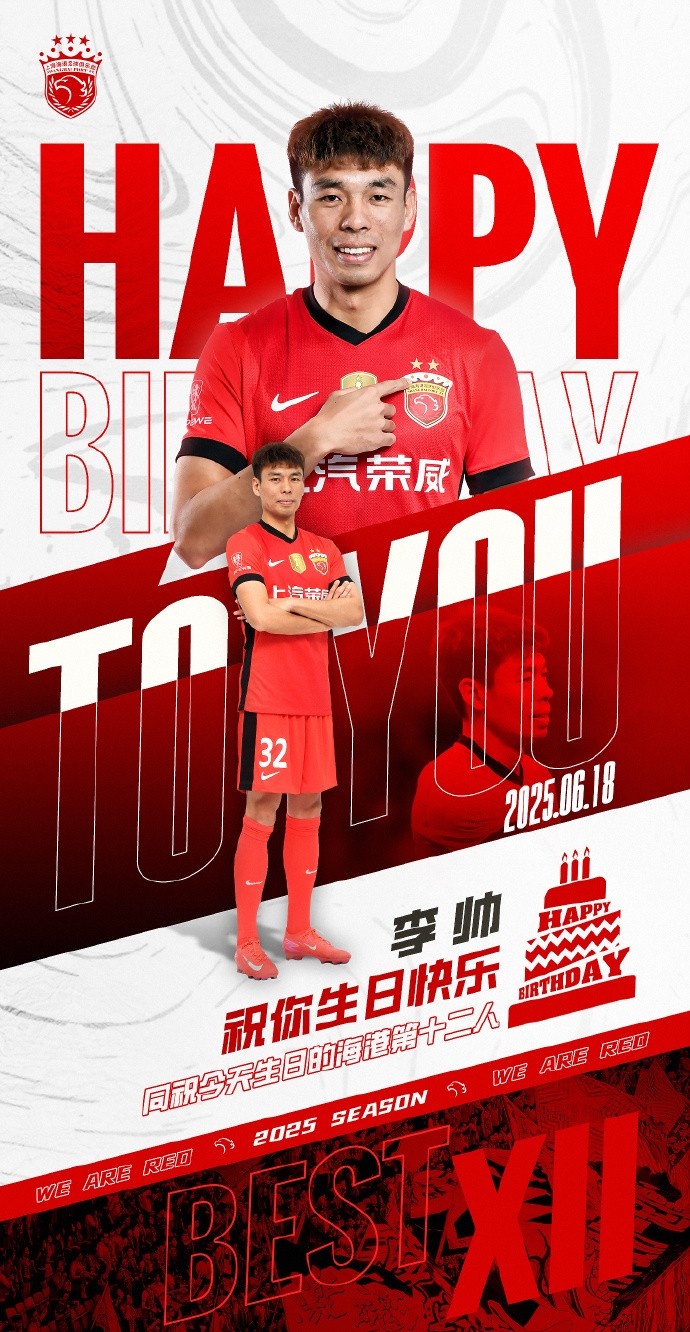 今天是海港足球俱乐部一线队球员李帅的生日,让我们祝他生日快乐!🎂🎉同祝今天生日的海港第十二今天是海港足球俱乐部一线队球员...
