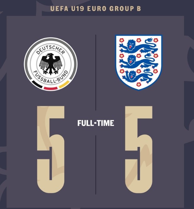 名局!U19欧青赛英格兰1-5落后连追四球战平德国