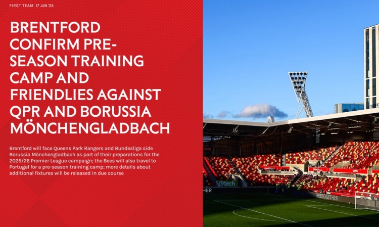 官方:布伦特福德将于8月与女王公园巡游者、门兴踢季前赛