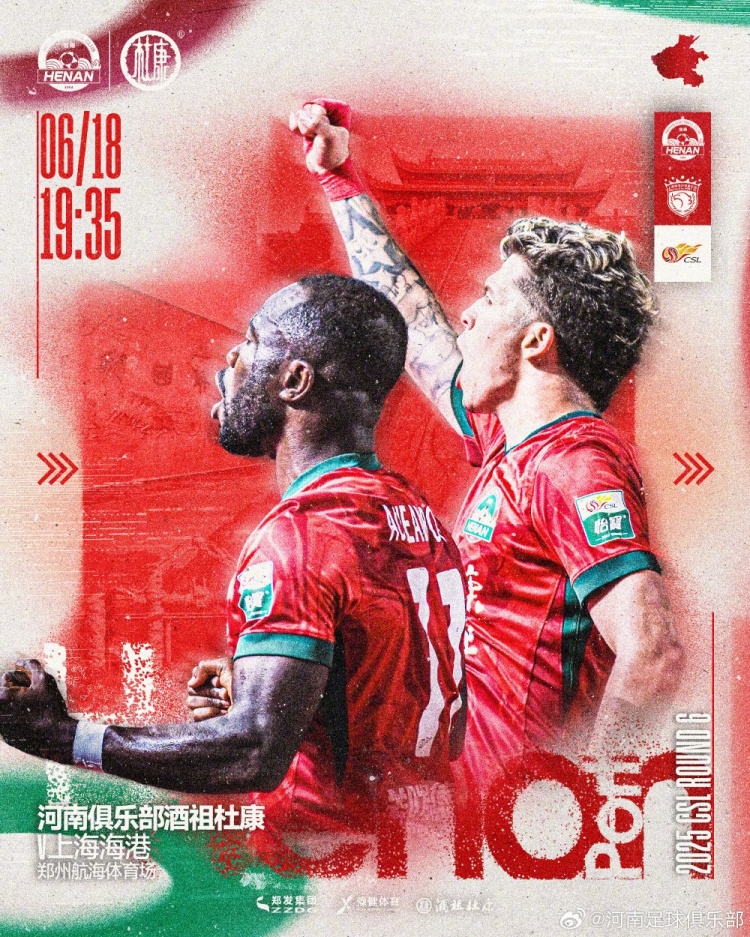 🏆2025华润饮料中超联赛第6轮🆚河南俱乐部酒祖杜康VS上海海港⏰6月18日 19:35🏟郑州航海体育场...