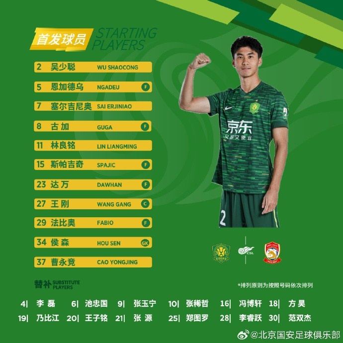 💚 北京国安今日首发! 连续主场作战🔰 国安国安,北京国安!...