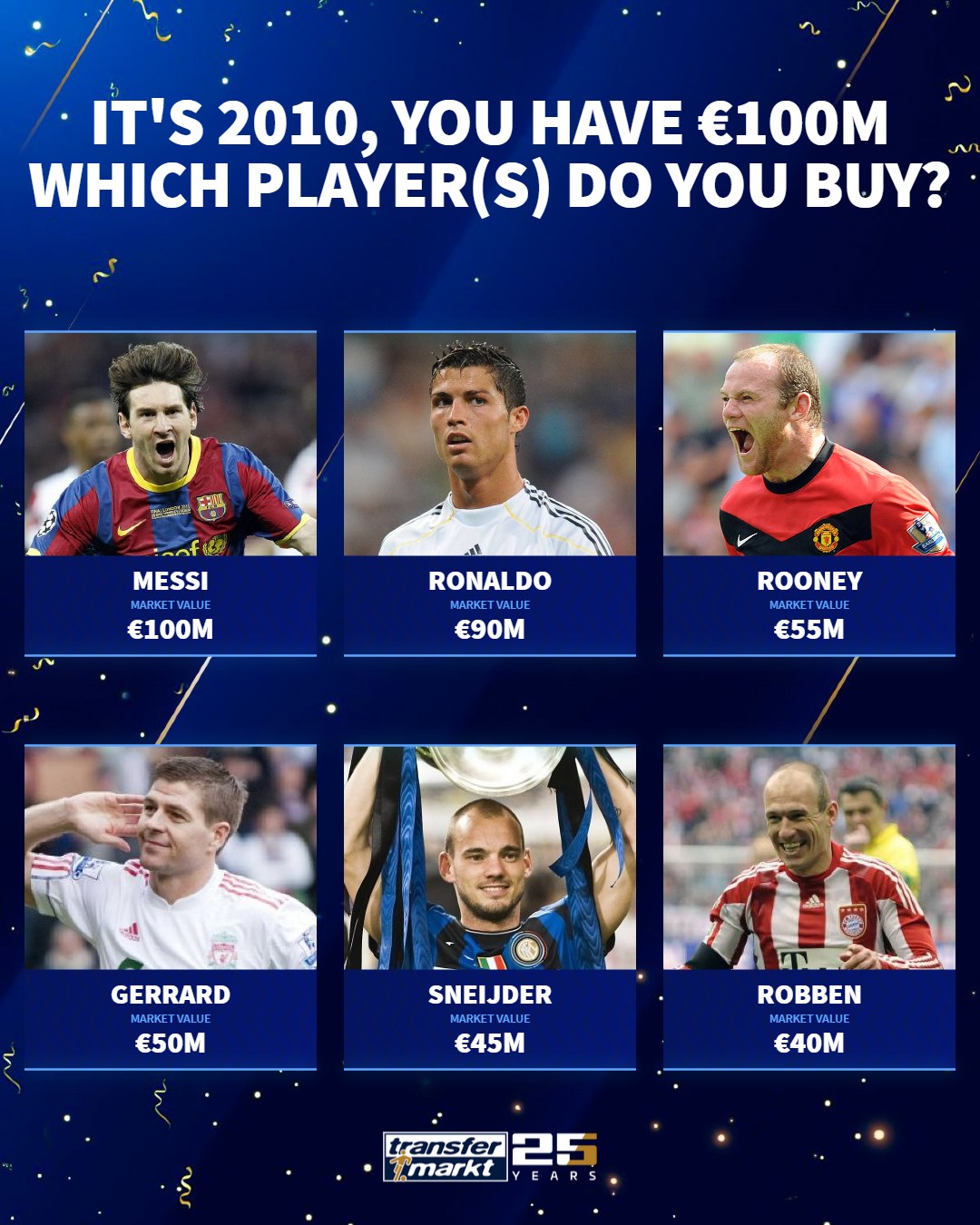 德转话题:2010年给你1亿欧预算,梅西、C罗、鲁尼……你会签谁?