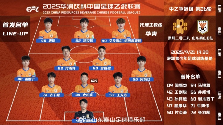 2025年中乙联赛第26轮争冠组山东泰山B队客场深圳二零二八队首发阵容 💪💪💪 ​​​...