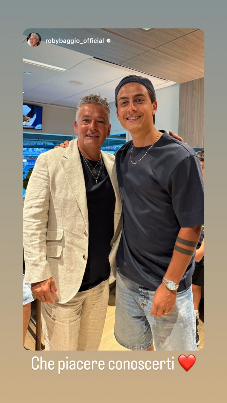 迪巴拉晒与巴乔合照:很高兴见到你❤️