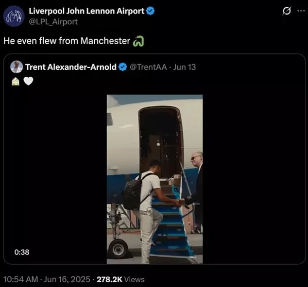 利物浦机场社媒嘲讽阿诺德叛徒:他连航班都是从曼彻斯特起飞的