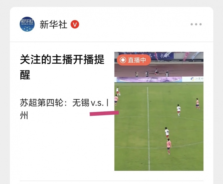 新华社也玩梗!新华社直播苏超标题:苏超第4轮 无锡v.s.丨州