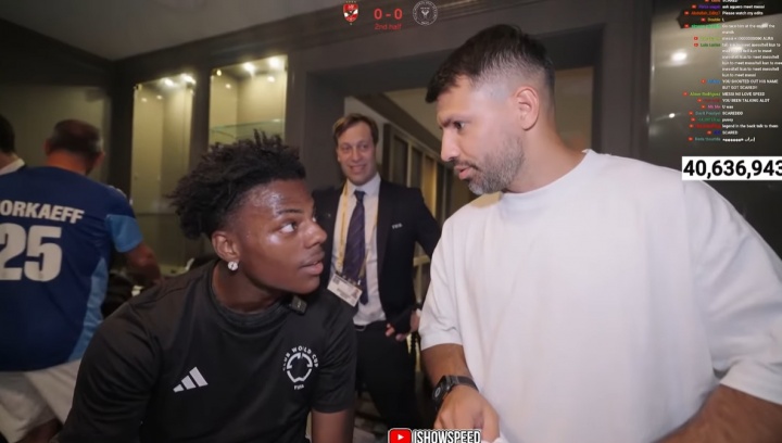 06月15日讯 油管网红IShowSpeed在世俱杯首日开启直播,直播中他与阿根廷球星阿圭罗互动,两人展开了一段有趣的对...