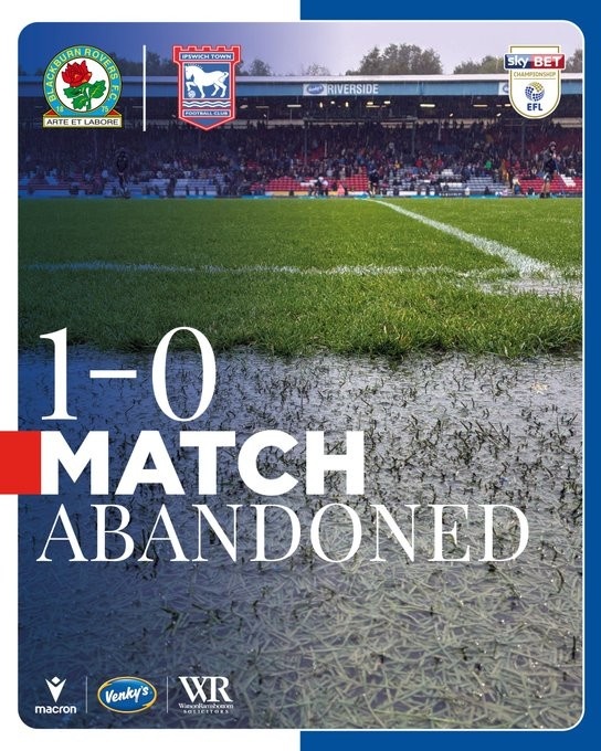 布莱克本与伊镇的比赛因大雨中止,还剩11分钟没踢