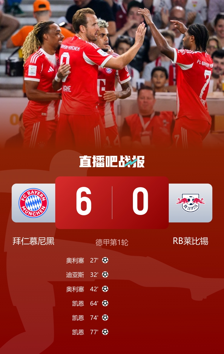 德甲第2但净胜球-1😑莱比锡豪取3连胜,但因惨败拜仁净胜球为负