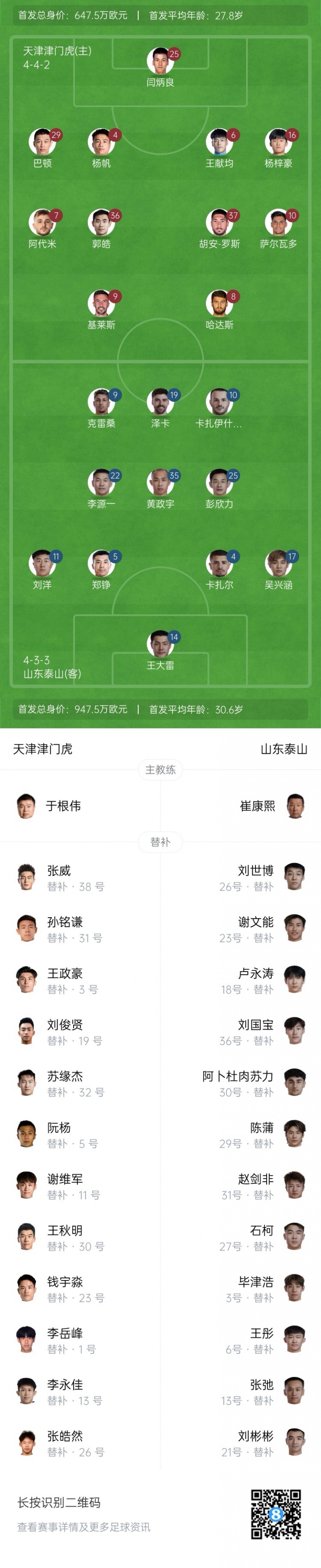 山东泰山今日阵容,加油💪💪💪 ​​​
