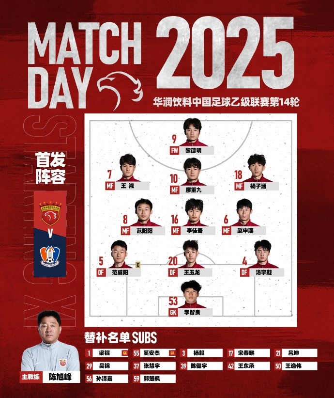 2025华润饮料中乙联赛第14轮,上海海港富盛经开vs江西庐山,今日首发名单。...