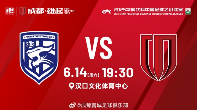 比赛日2025中乙联赛 第14轮⚽ 武汉三镇B队 vs 成都蓉城B队📅 6月14日(周六)19:30汉口文化体育中心📺 ...