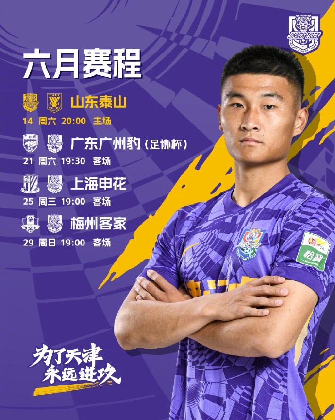 天津津门虎六月赛程确定 明晚将在主场迎战山东泰山💪