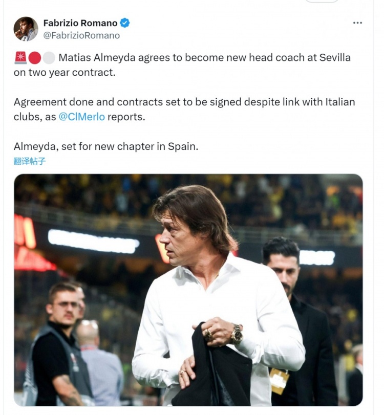 罗马诺:阿尔梅达执教塞维利亚达成协议,即将签署两年合同
