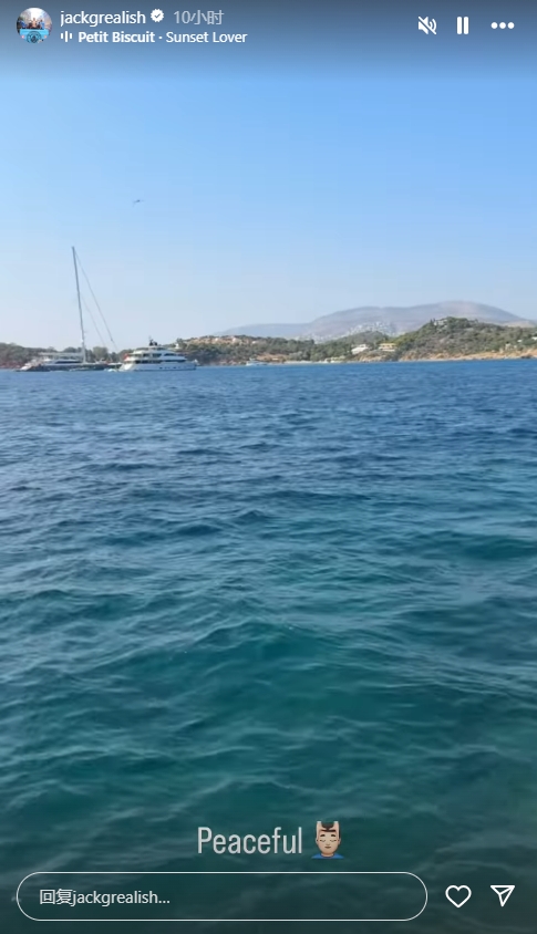 心如止水@哈兰德😎格拉利什晒海边度假照,配文:peaceful