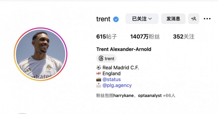 阿诺德更换社媒个人头像,即将开启皇马新篇章