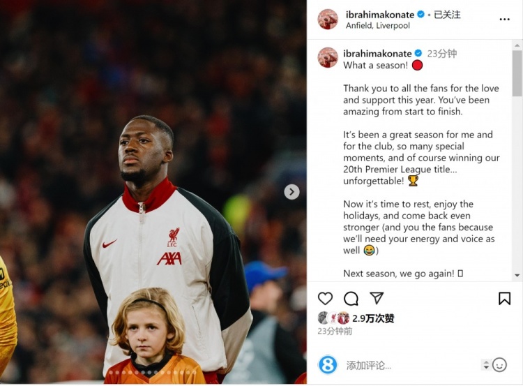 6月12日讯 利物浦后卫科纳特社媒发文,感谢球迷本赛季的支持。科纳特写道:“多么精彩的赛季!感谢所有球迷本赛季给予我们的...