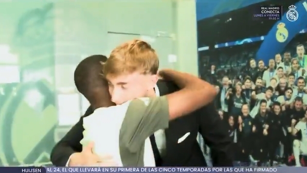 怀森与皇马队友们拥抱致意🤣与阿拉巴迪亚斯形成最萌身高差