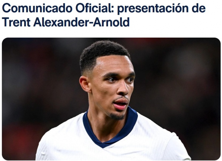 官方:皇马新援阿诺德将在明天举行球员亮相仪式