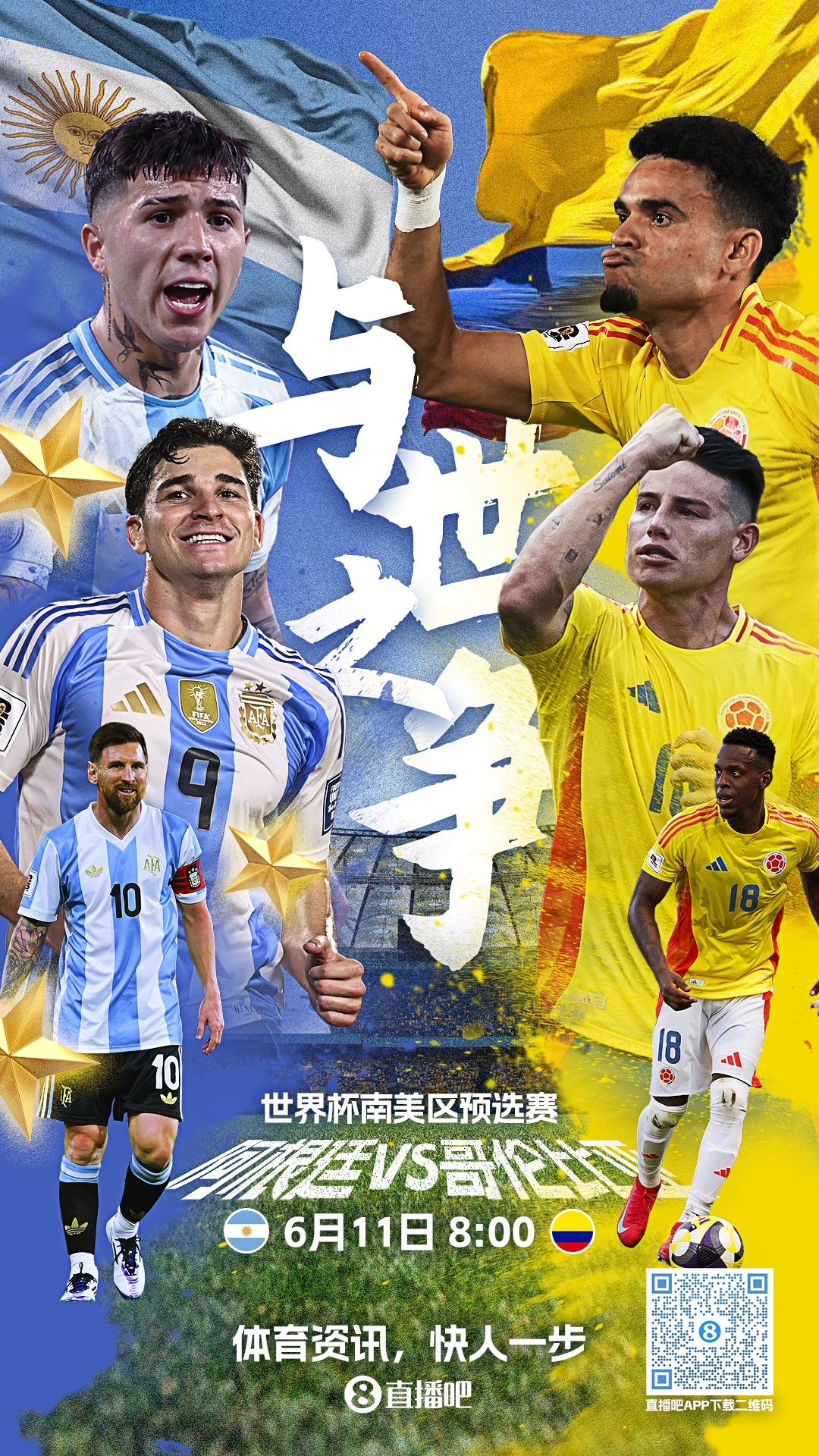 06月11日讯 北京时间08:00,世预赛南美区第16轮 阿根廷主场迎战哥伦比亚。双方首发出炉,将带来免费独家视频直播。...