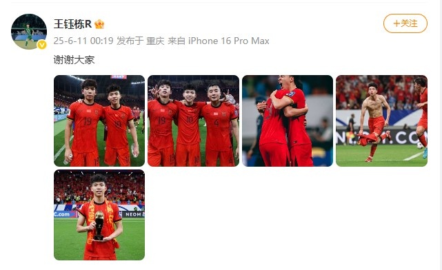 未来是你的!王钰栋赛后社媒晒与队友合影:谢谢大家