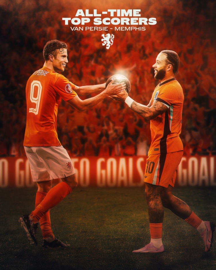 50球并列射手王,荷兰队晒德佩范佩西海报:两位偶像,共享纪录