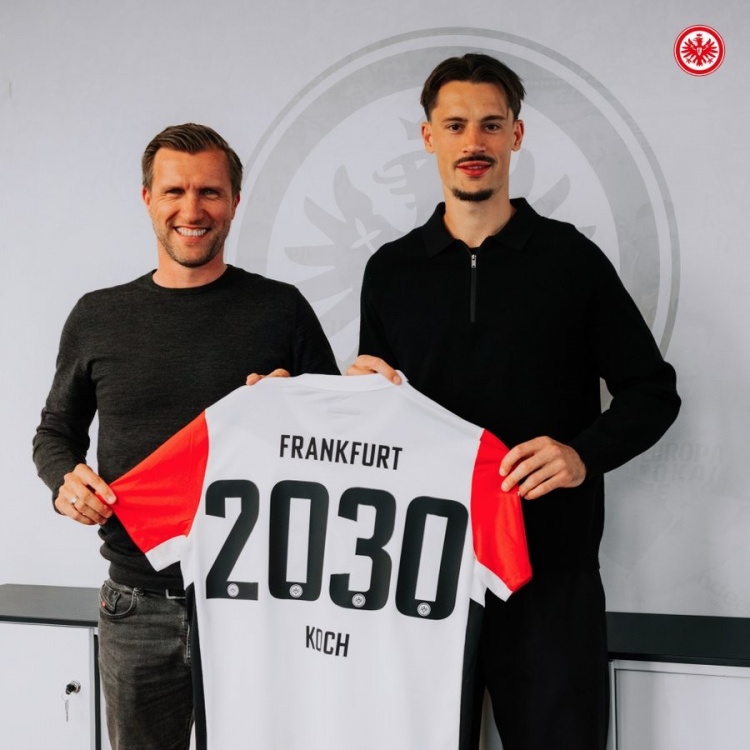 6月10日讯 法兰克福官方宣布,和队内主力中卫罗宾-科赫续约至2030年。28岁的科赫本赛季为法兰克福43场贡献3球2助...