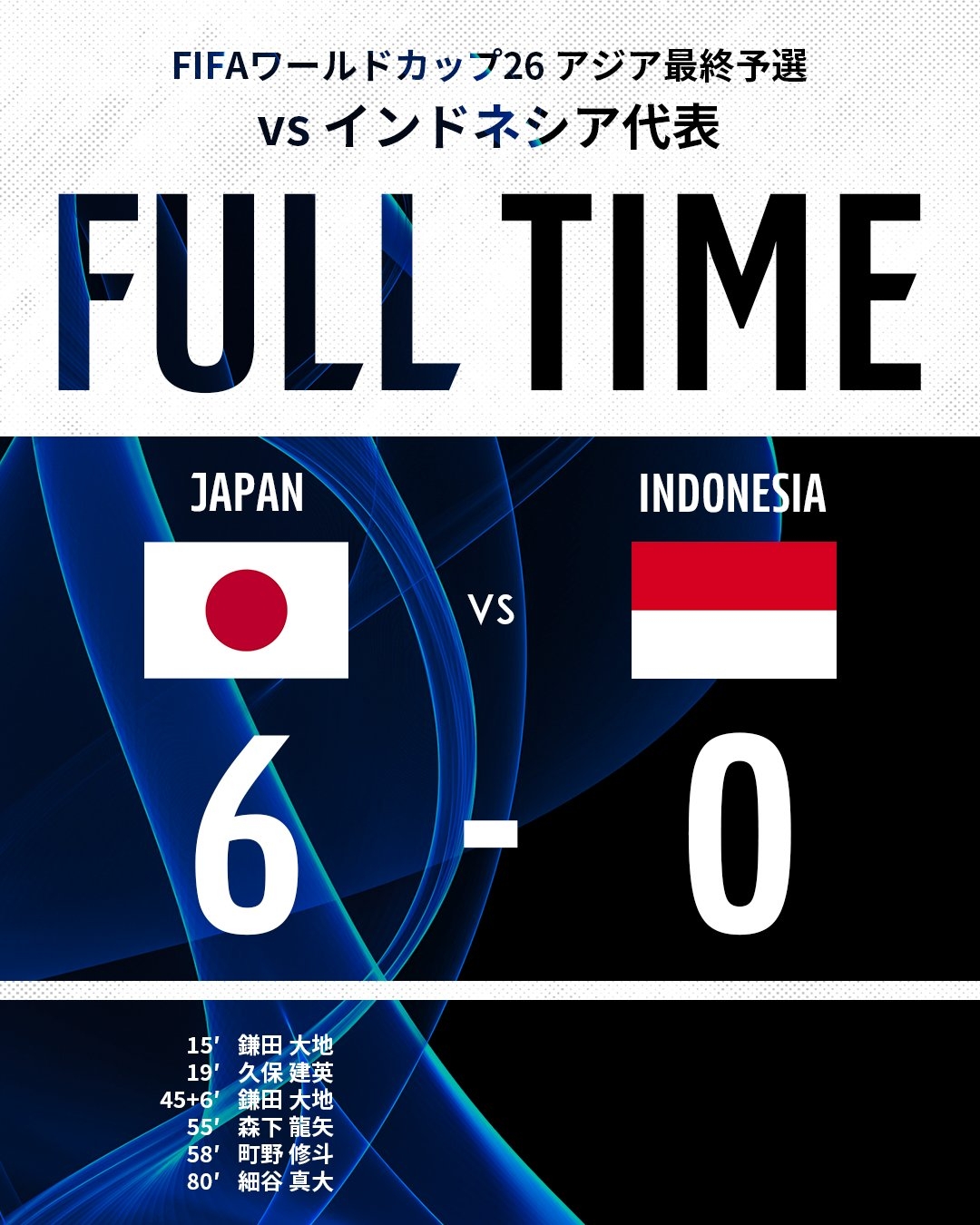 大胜收官!日本10战7胜27净胜球结束世预赛,提前备战2026世界杯