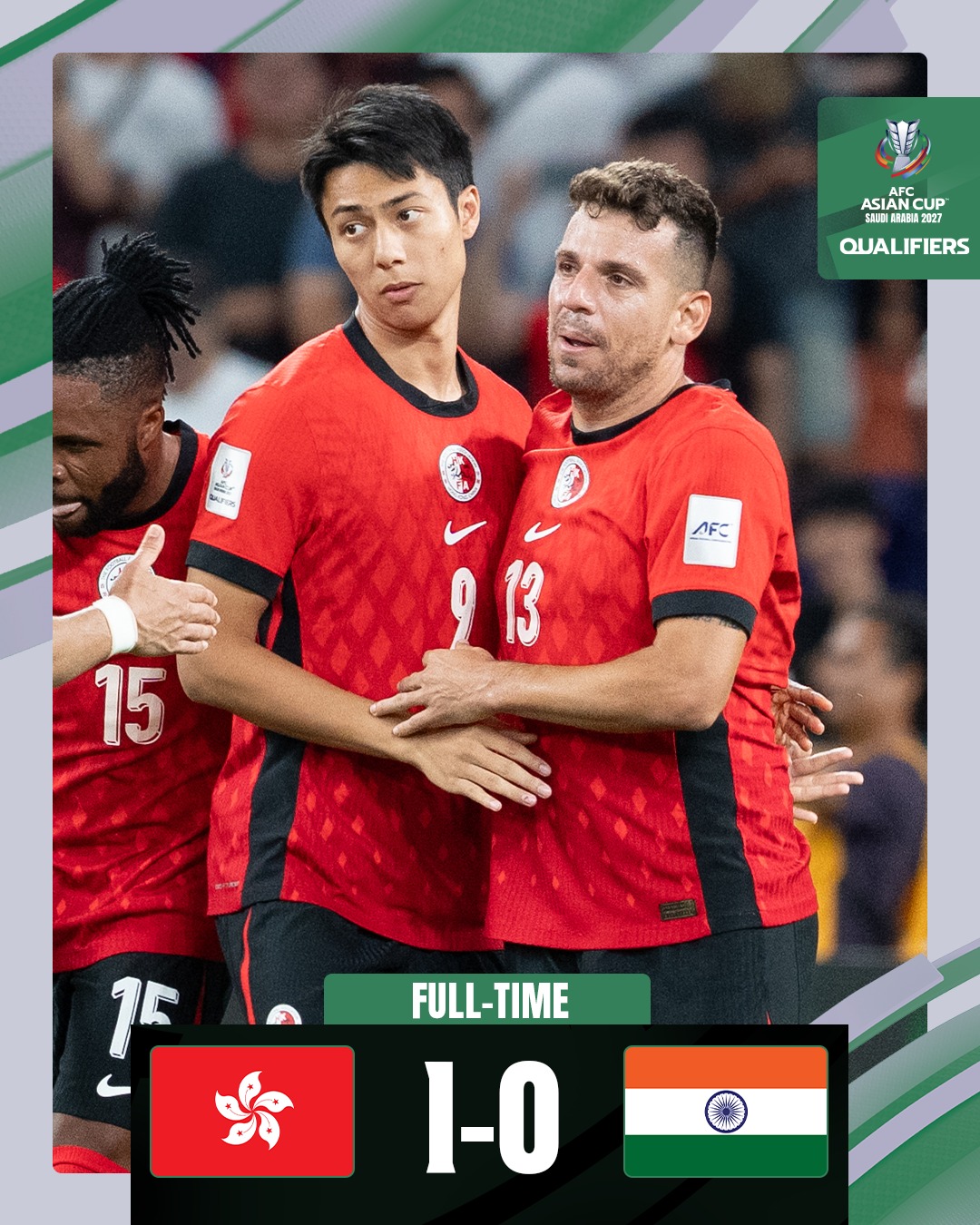 双喜临门!中国香港点射1-0绝杀印度,亚预赛小组1胜1平领跑!
