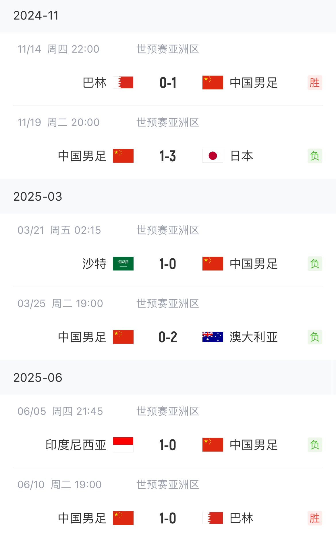 终于赢了!国足胜巴林终结世预赛4连败,此前负日本沙特澳洲印尼