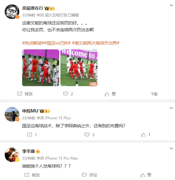 06月10日讯 国足vs巴林比赛,谢文能连续2次角球直接罚出界,众多媒体人表示太不能理解。媒体人吐槽谢文能↓...