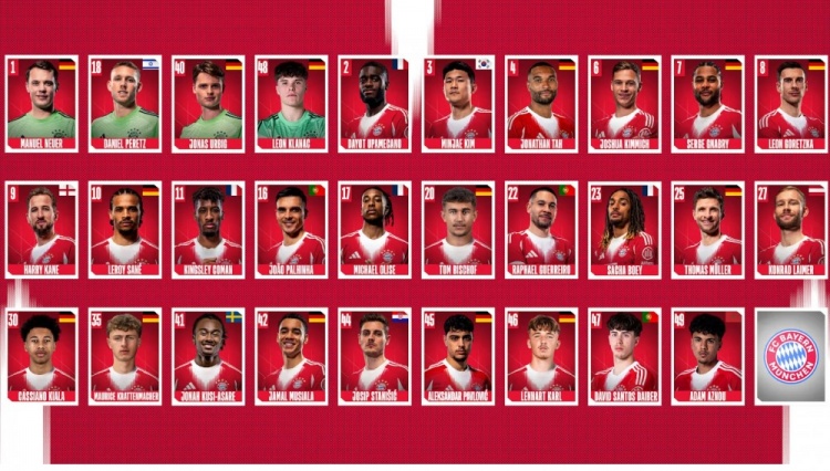 拜仁公布世俱杯名单:凯恩、穆勒领衔,若纳坦-塔、萨内在列