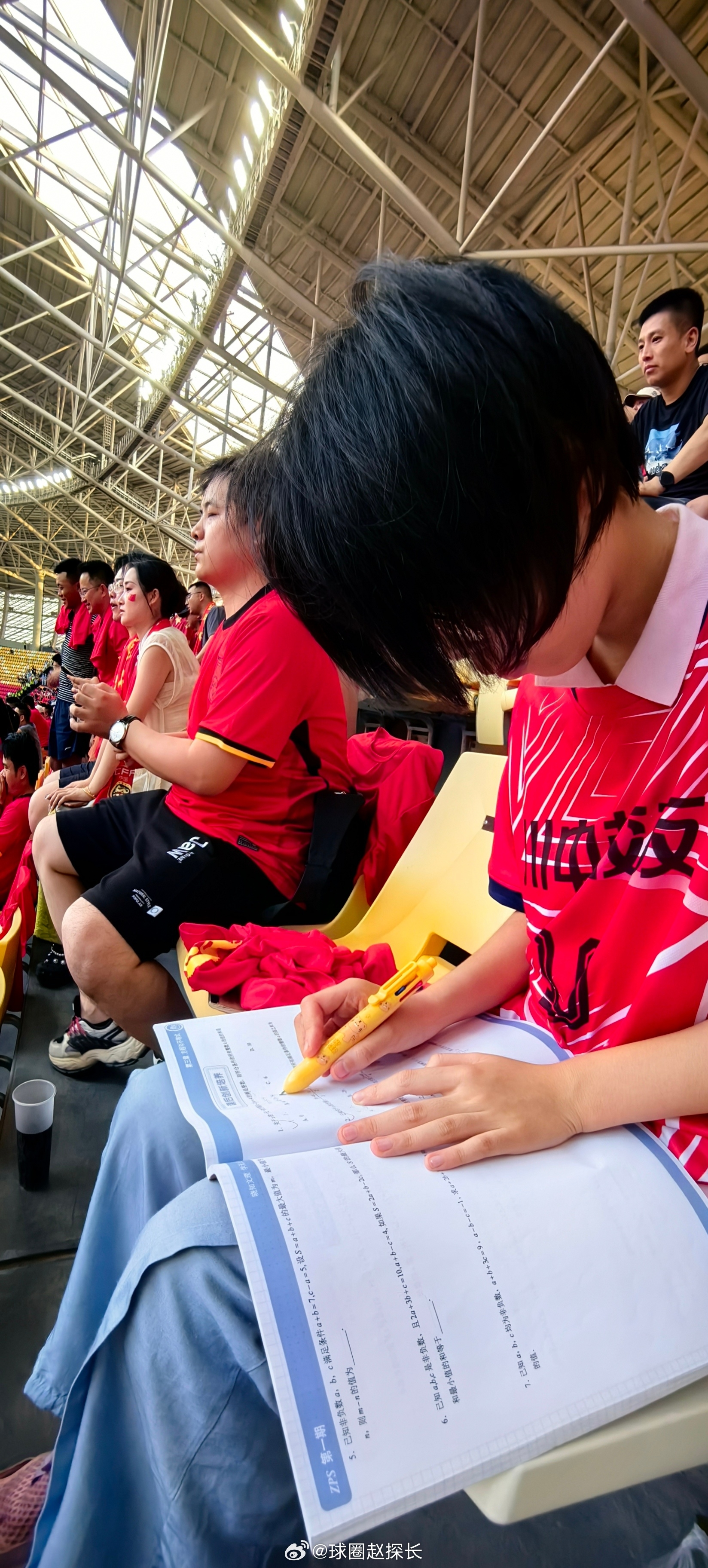 😭比赛不好看?国足比赛现场,有小球迷低着头刷题做作业