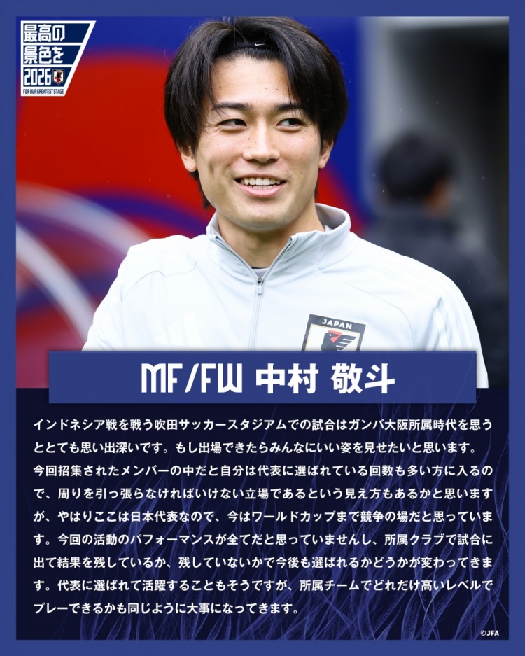 中村敬斗谈战印尼:要用表现带动队友,接下来将面临各项队内竞争