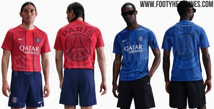 巴黎新赛季赛前训练服谍照:蓝色基底,视觉元素致敬埃菲尔铁塔