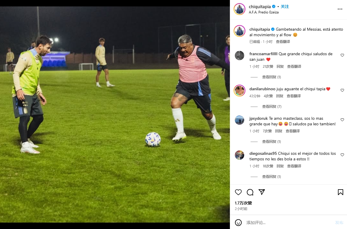 06月10日讯 北京时间6月11日8点,南美世预赛阿根廷将对阵哥伦比亚。在今日阿根廷训练后,阿根廷足协主席塔皮亚晒出了全...
