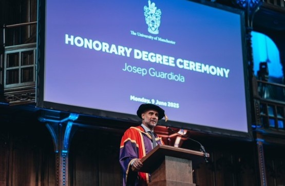 瓜帅被曼彻斯特大学授予荣誉学位,以表彰9年来对这座城市的贡献