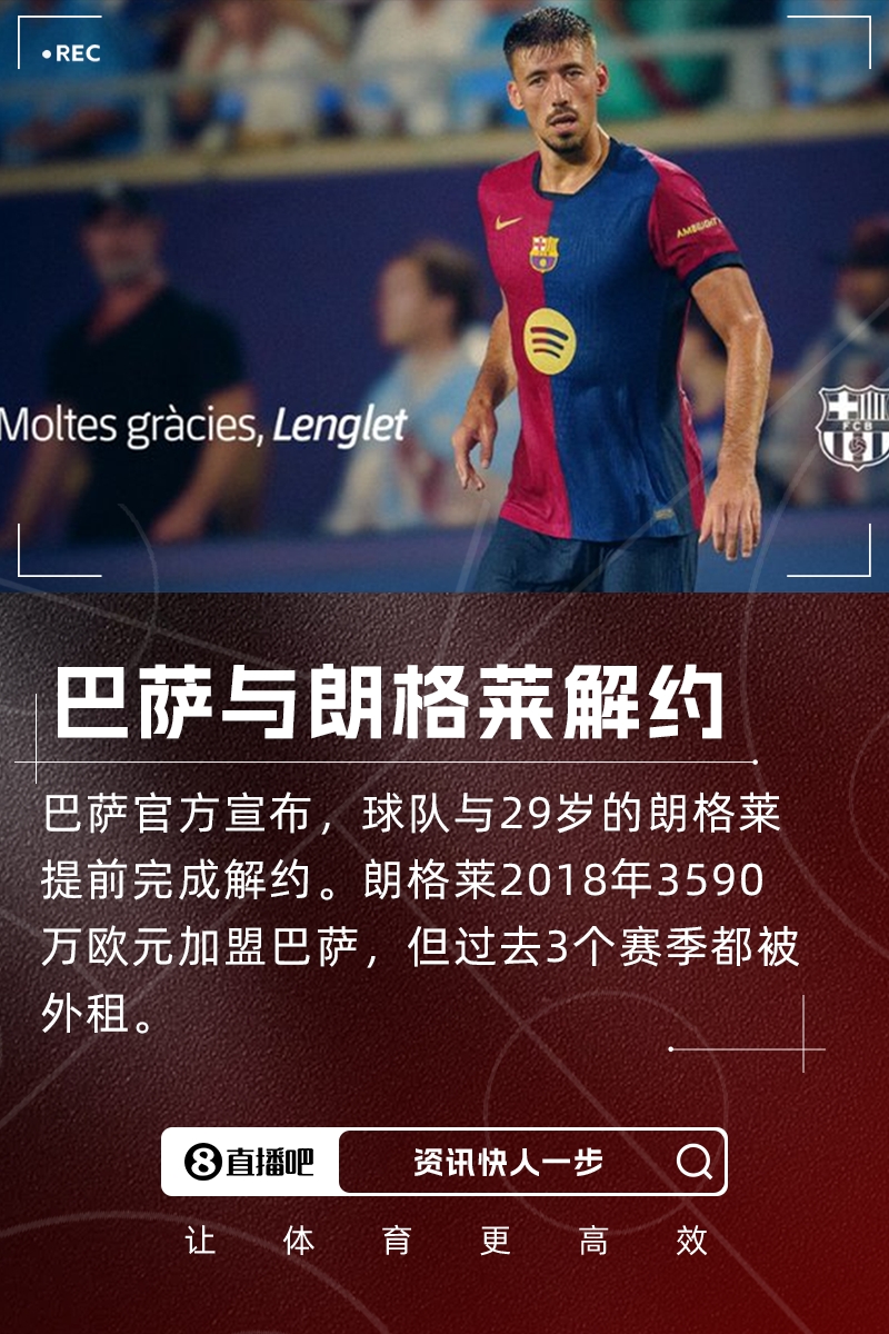 06月09日讯 马竞官方宣布,法国中卫朗格莱自由身加盟球队,双方签约至2028年。朗格莱与巴萨的原有合同2027年才到期...