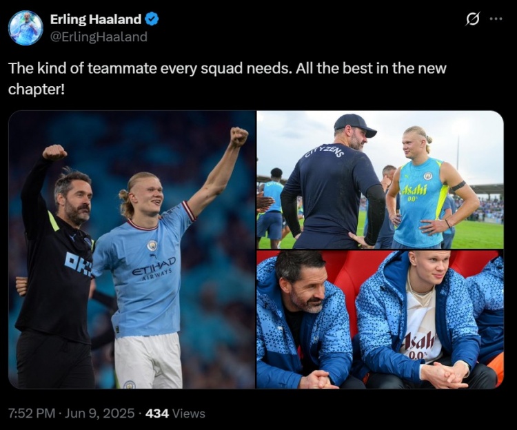 6月9日讯 曼城此前官宣,39岁的老门将卡森合同到期离队。哈兰德在个人社媒晒出此前与卡森的合照,为其送上祝福。哈兰德写道...
